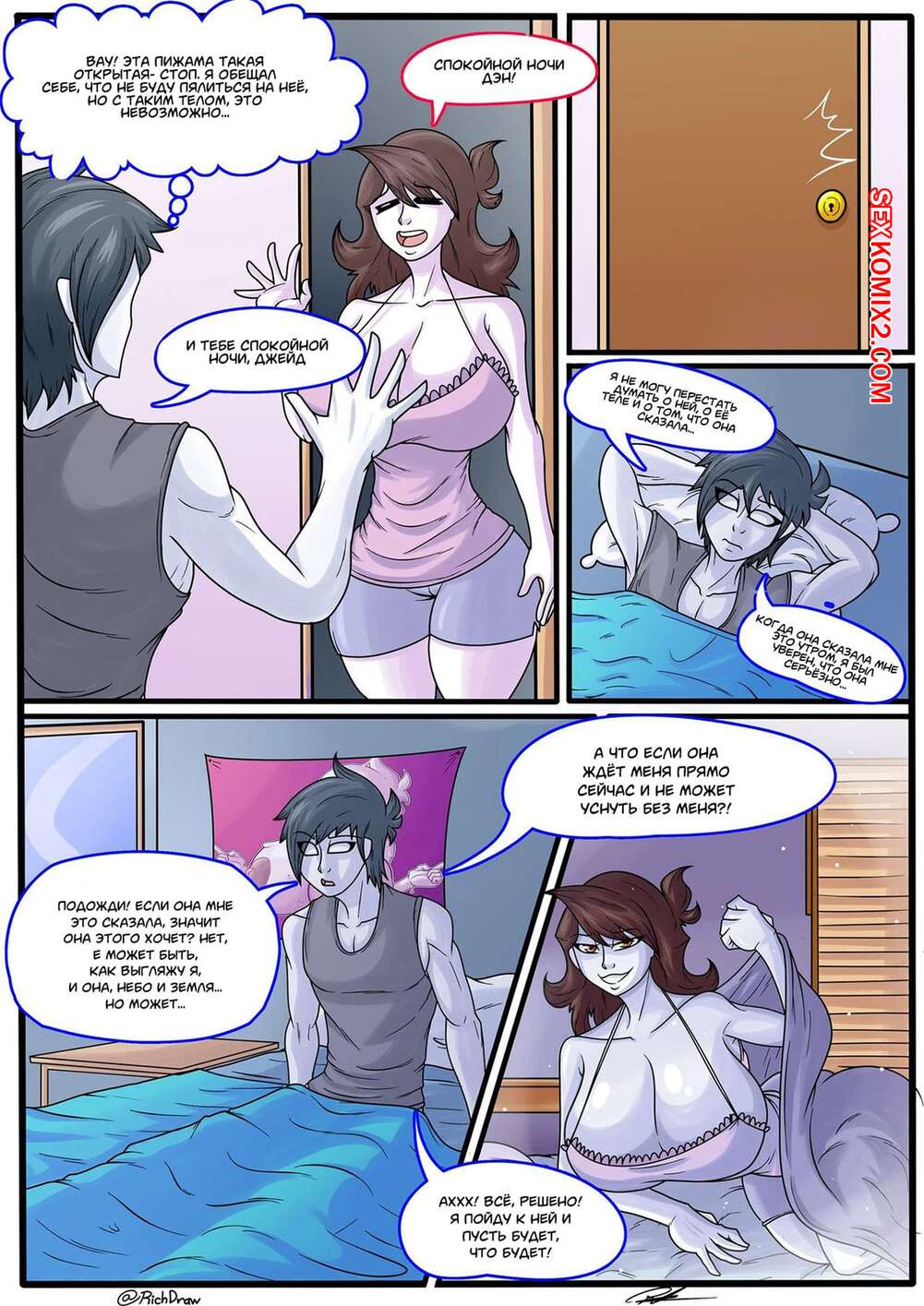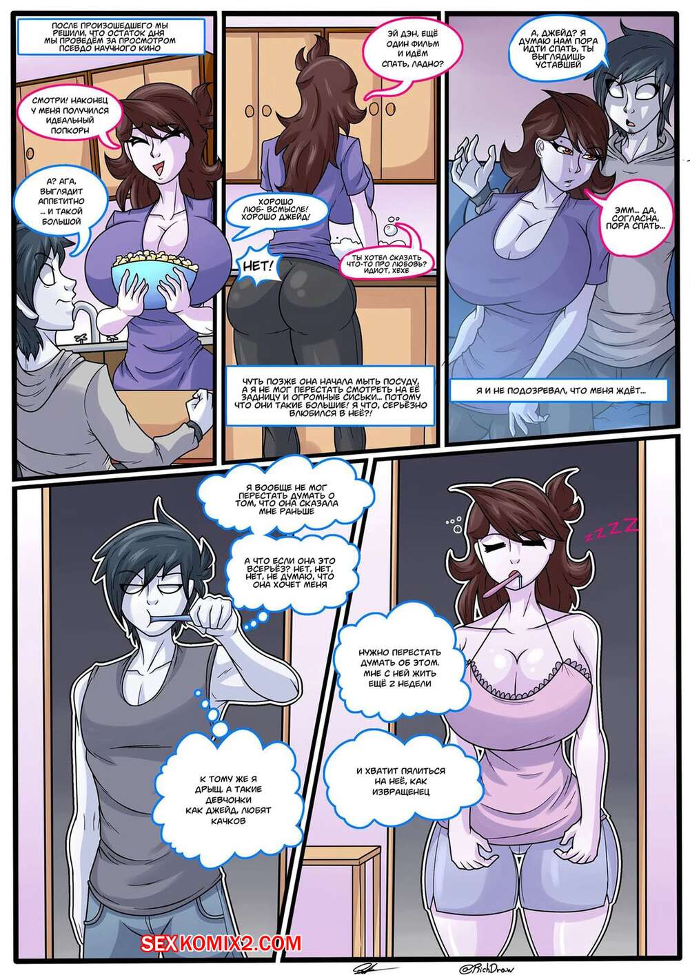 Порно комикс Забота о моем лучшем друге. Caring For My Best Friend. Richdraw Парень возбудился при виде шикарного тела своей подруге и она решила позаботиться о его стояке. Красотка разделась и дала парню себя выебать, заполнив ее пизденку спермой.