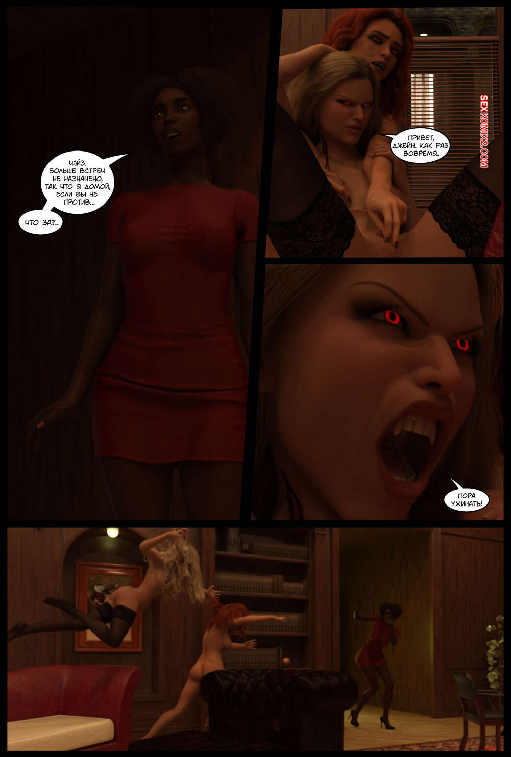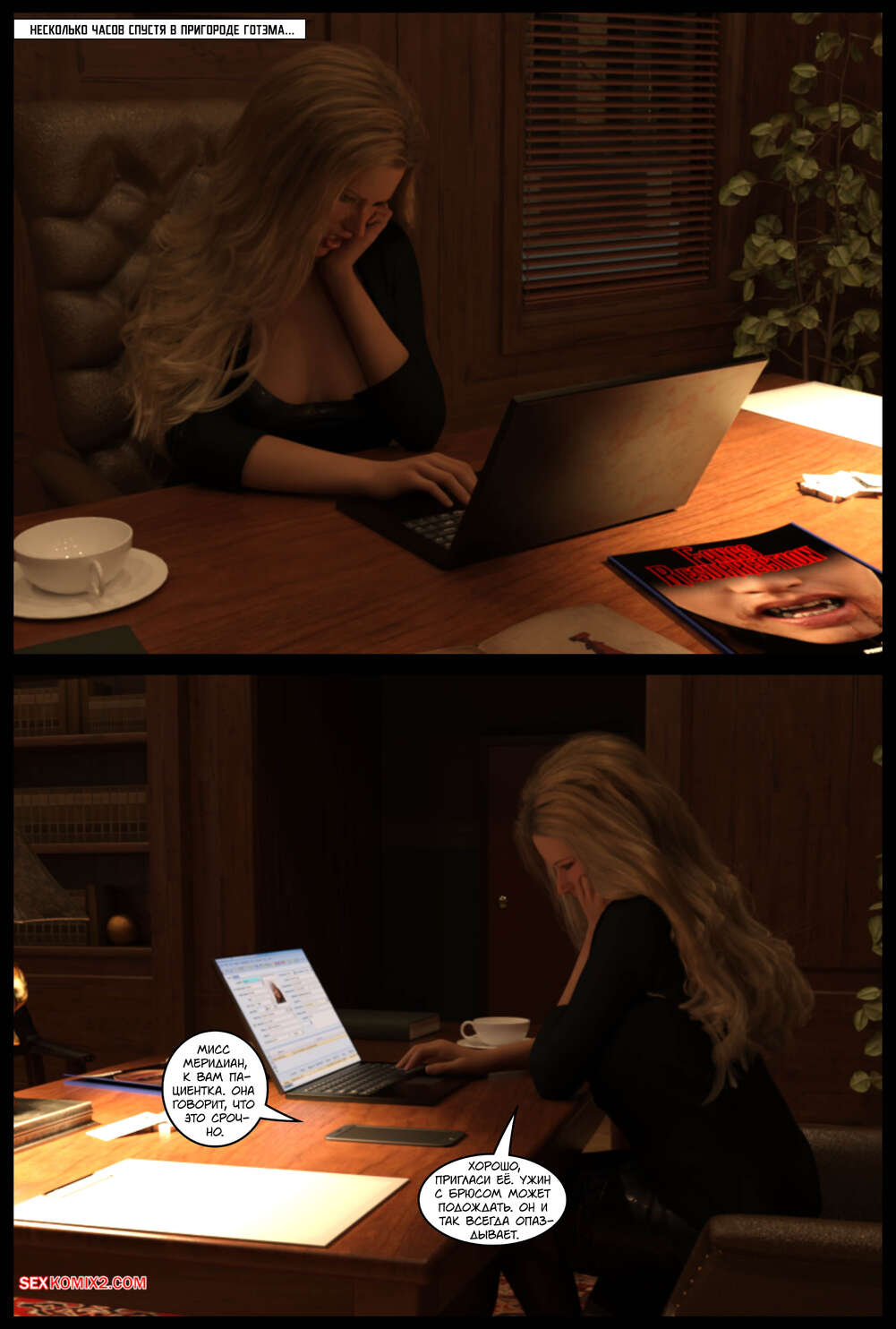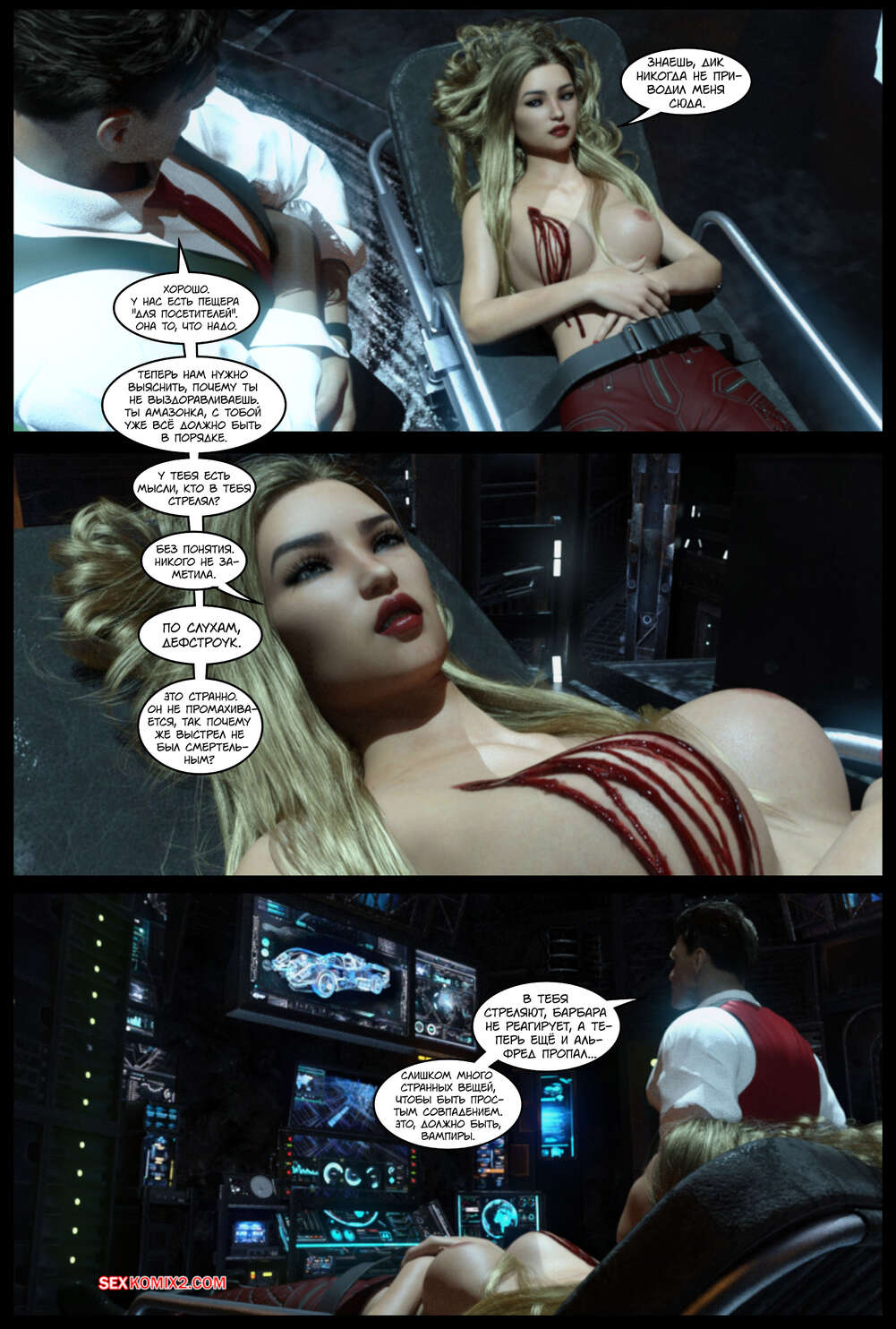 ΠΠΎΡΠ½ΠΎ ΠΊΠΎΠΌΠΈΠΊΡ DC. ΠΠ°ΠΌΠΏΠΈΡΡ DC. DC Vampires. Gotham Underworld. Cantraps Π ΠΎΠ±ΠΈΠ½ ΠΏΡΠΈΠ²Π΅Π» Π² ΠΎΡΠΎΠ±Π½ΡΠΊ ΡΠ΅ΠΊΡΡΠ°Π»ΡΠ½ΡΡ Π±Π»ΠΎΠ½Π΄ΠΈΠ½ΠΊΡ ΠΈ ΠΎΡΠΏΡΠ°Π²ΠΈΠ»ΡΡ Ρ Π½Π΅ΠΉ Π² ΡΠΏΠ°Π»ΡΠ½Ρ. ΠΡΠ°ΡΠΎΡΠΊΠ° ΡΠ°Π·Π΄Π΅Π»Π°ΡΡ ΠΈ ΡΠ°Π·Π΄Π²ΠΈΠ½ΡΠ»Π° Π½ΠΎΠΆΠΊΠΈ ΠΏΠ΅ΡΠ΅Π΄ ΠΏΠ°ΡΠ½Π΅ΠΌ, ΠΏΠΎΡΠ»Π΅ ΡΠ΅Π³ΠΎ Π΄Π°Π»Π° Π΅ΠΌΡ ΡΠ΅Π±Ρ ΠΊΠ°ΠΊ ΡΠ»Π΅Π΄ΡΠ΅Ρ Π²ΡΠ΅Π±Π°ΡΡ.