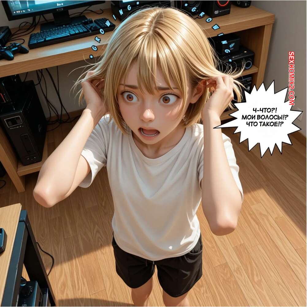 Порно комикс Чудесные метаморфозы. Эмма Фросто. Marvelous Metamorphosis. Emma Frost. AlwaysOlder Юный парень играл в компьютер, но с ним стали твориться невероятные изменения. Он превратился в горячую блондинку Эмму Фрост. Красотка была возбуждена, поэтому стала ласкать свою пизденку.